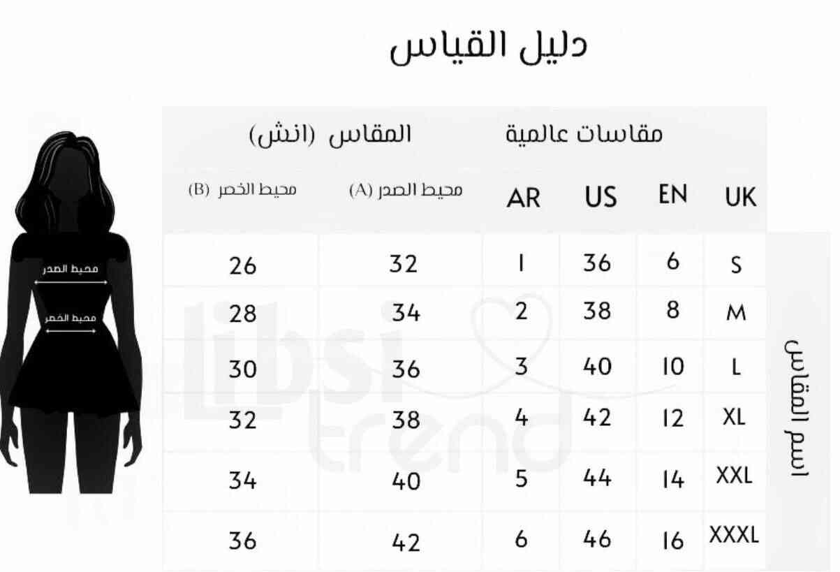 يرجى ملاحظة أن المقاسات الموضحة على المنتجات لدينا هي مقاييس إرشادية مستخدمة بشكل عام